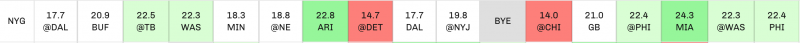Sanders landed in a great spot in Philly, and their second half of the season appears to be soft against the rush. The Eagles take on the Giants twice after their Week 10 bye, who ranked 31st last year in RB aFPA and also have tilts with Washington and Miami who were 28th and 27th in aFPA to opposing backfields. By drafting Sanders as early as they did, the Eagles sent a message that they plan to run more this season and with the first half of the season under his belt, the rookie could be solid down the stretch.