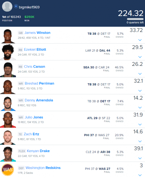 DraftKings Week 15 Millionaire Winning Lineup