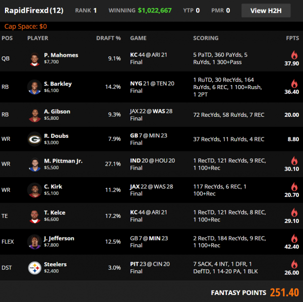 Week 1 DraftKings & FanDuel Winning GPP Lineup Review