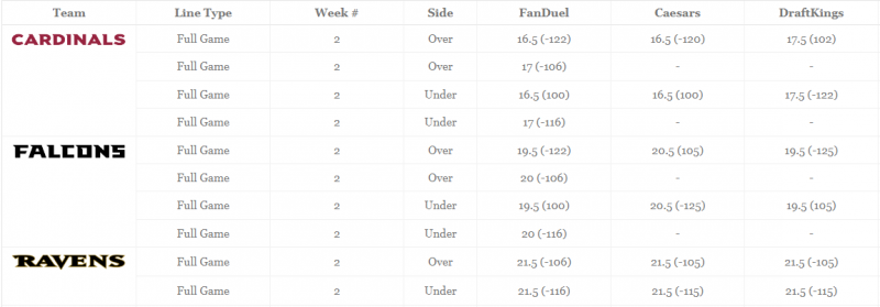 Easily compare team totals at multiple sportsbooks!
