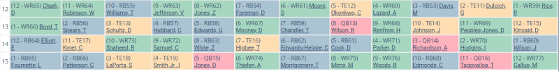 - There were 68 total RBs drafted and 77 WRs.