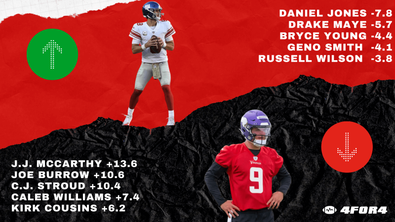 During OTAs and minicamps, Brian Daboll was seen calling plays, which bodes well for Daniel Jones as the Giants' offense ranked an average of 17th in plays per game, 20th in pass play percentage, and 26th in pass attempts per game in 2022-2023 with Mike Kafka running the offense, while Daboll’s last two years in Buffalo from 2020-2021 resulted in 12th, 8th, and 13th in those same categories, respectively. If we see even small shifts toward his old ways, Jones could outplay his current QB27 ADP.