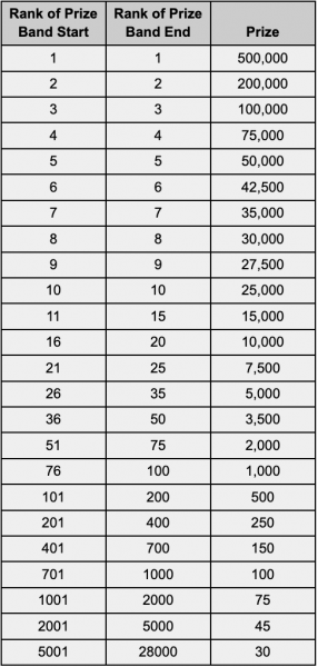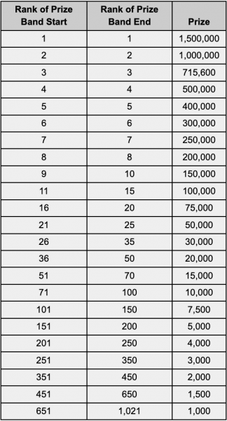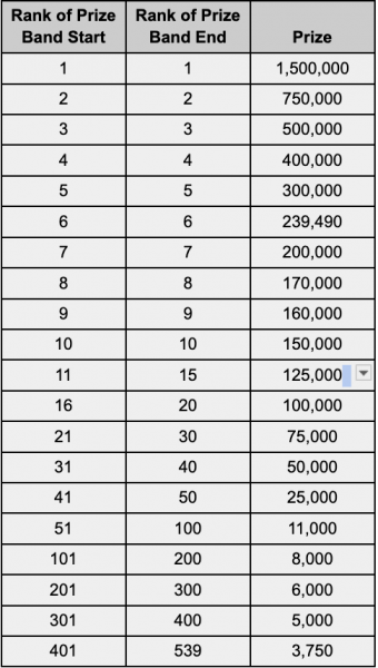 *The above chart only shows the prizes for the finals