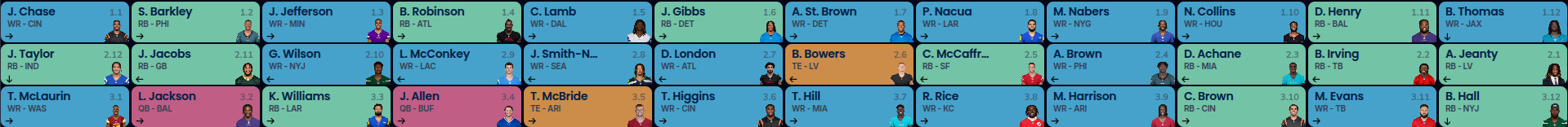 • Adopting a wide receiver-heavy approach throughout the draft can yield significant results, with viable options seemingly available into the late rounds.