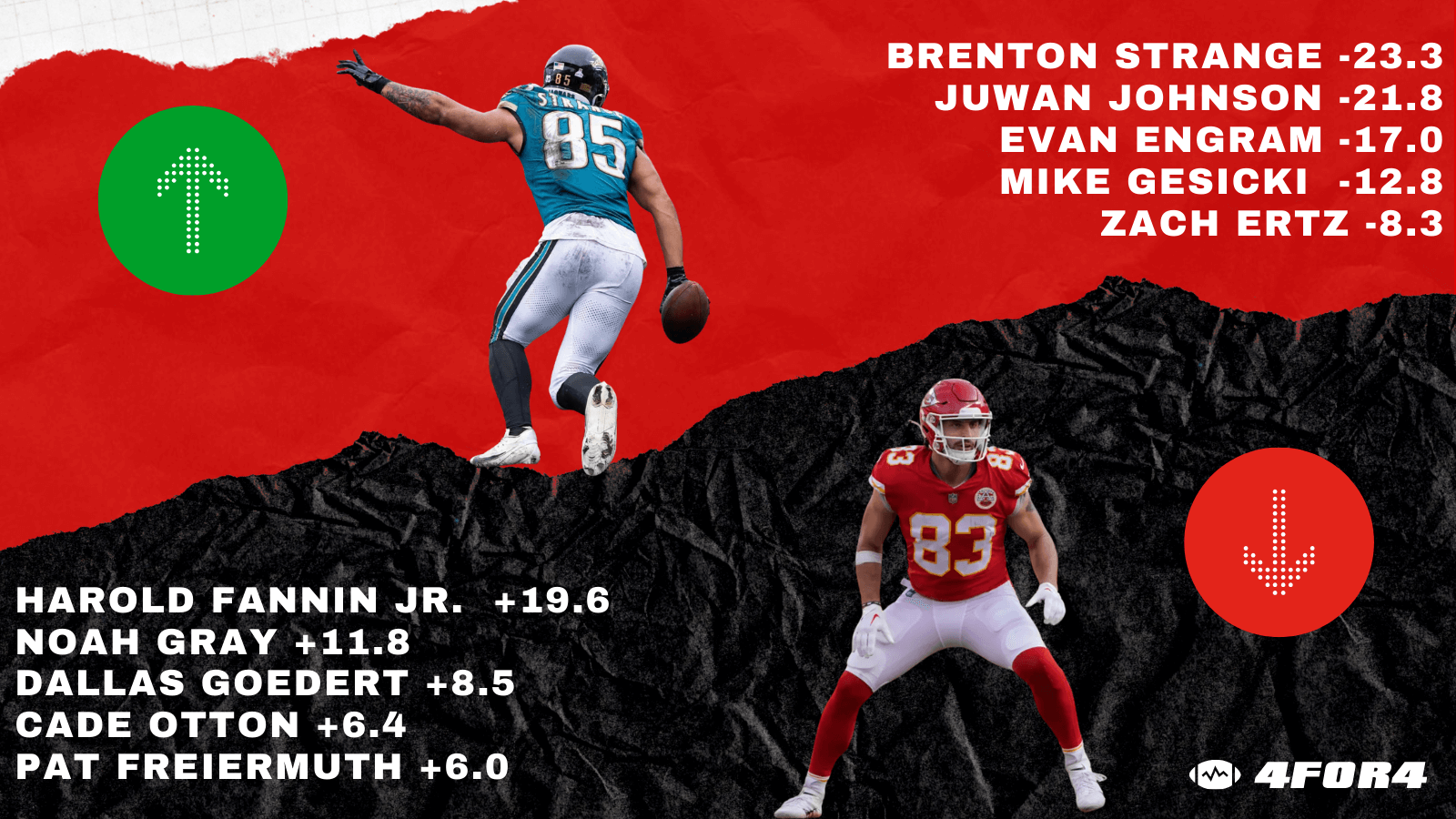 Perhaps drafters thought Travis Kelce was going to ride off into the sunset and tour the world with Taylor Swift and when that didn't happen, Noah Gray fell in ADP. Gray averaged just 2.9 targets per contest in 2024 which may jump a bit as KC could preserve Kelce for the postseason even more in 2025 as he enters his age-35 campaign. Buy the dip for those last-round stabs as Gray could be valuable in certain weeks for best ball purposes.