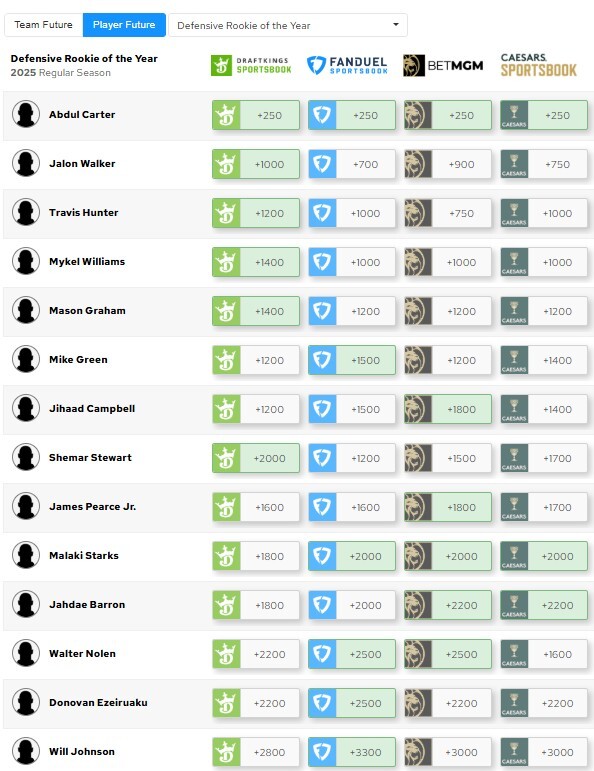 NFL Defensive Rookie Of The Year Odds 2025: Best Bets
