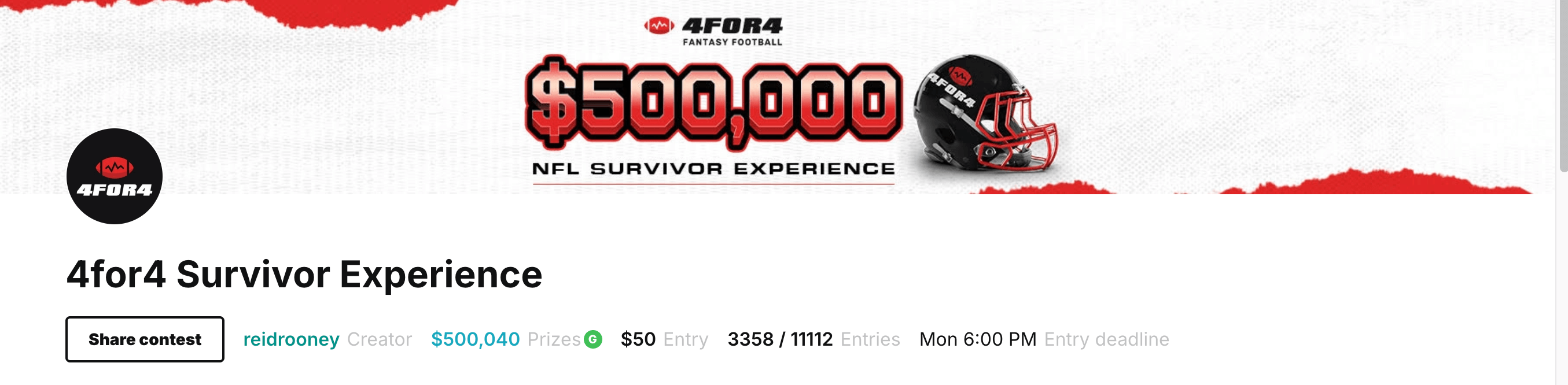 Betsperts and 4for4 have partnered with Splash Sports for a GUARANTEED $500K Survivor Pool. The overlay is real, so get in here before it locks!
