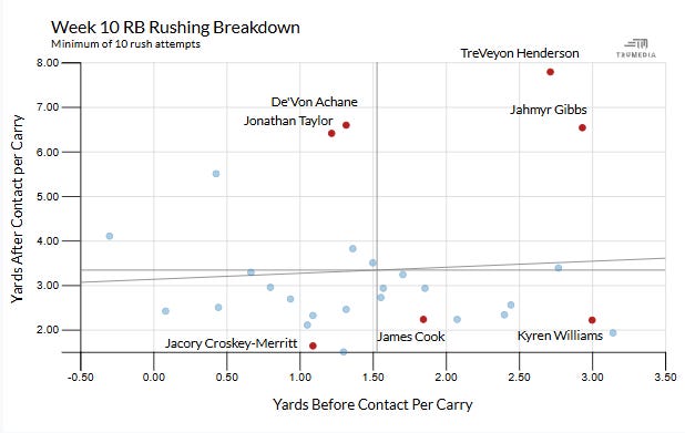 WEEK 10 RB Yards After Contact vs Yards Before