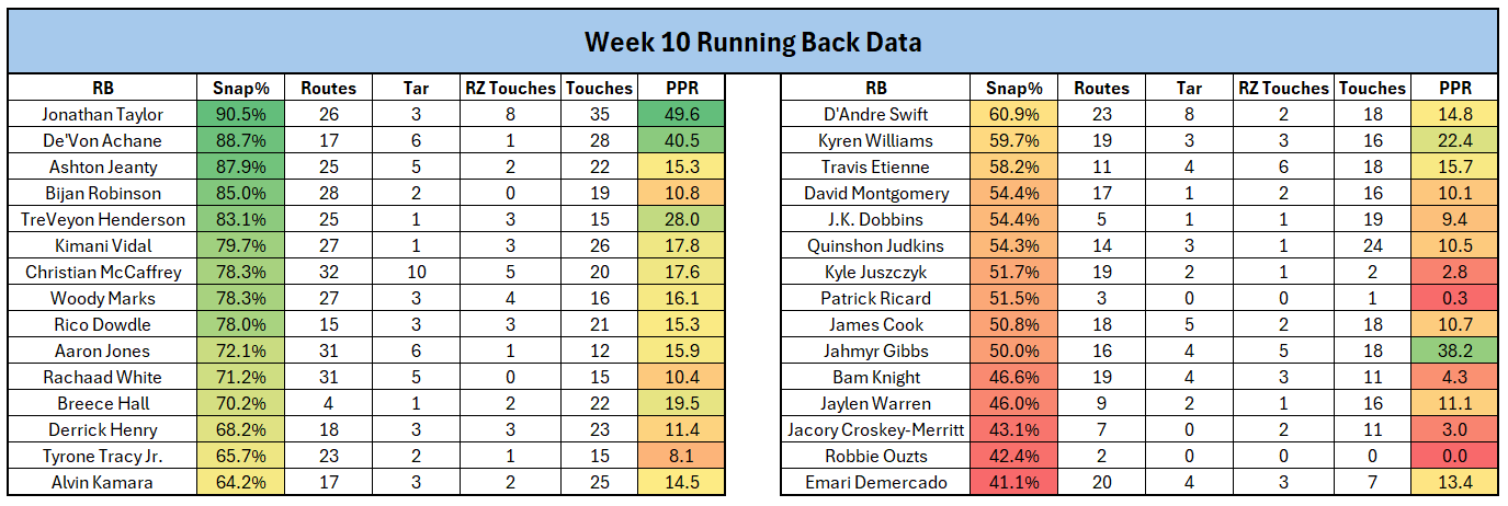 WEEK 10 RB Opportunities