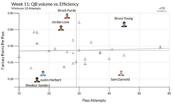 WEEK 11 QB VOLUME VS. EFFICIENCY