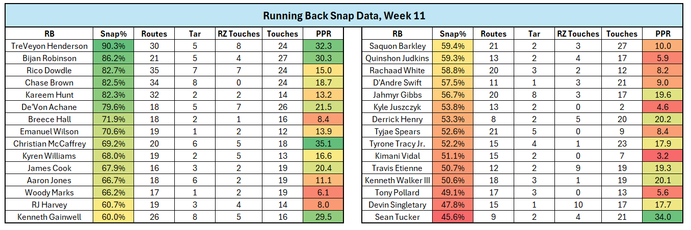 SEA/LAR: Kenneth Walker played over 50% of the snaps for the third
