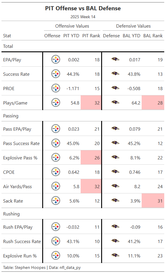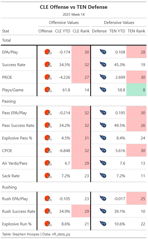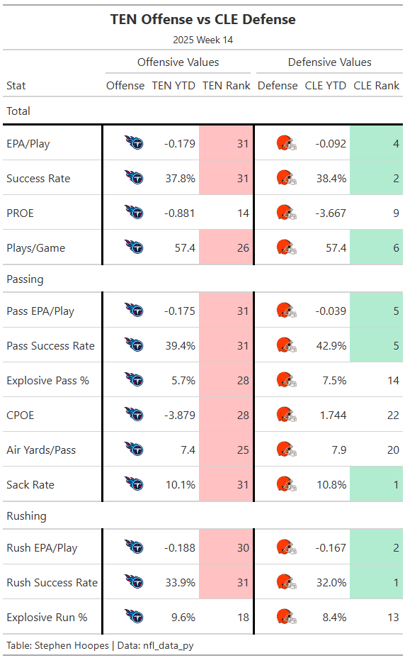 • They were average in PROE, pass efficiency, CPOE, and run efficiency.