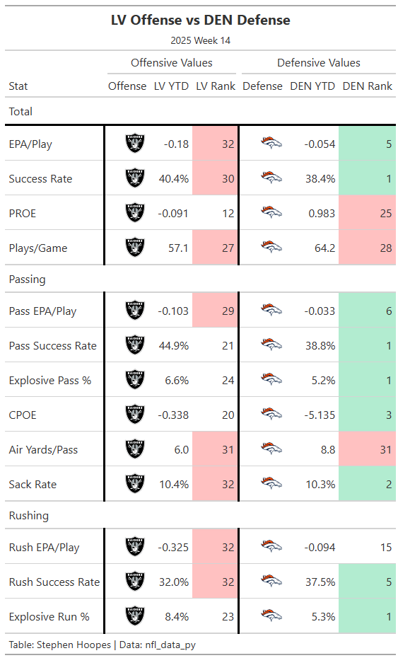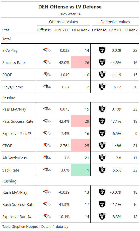 • There’s no juice to this offense, and now they face a Broncos’ defense that is 1st in limiting both explosive passes and runs.