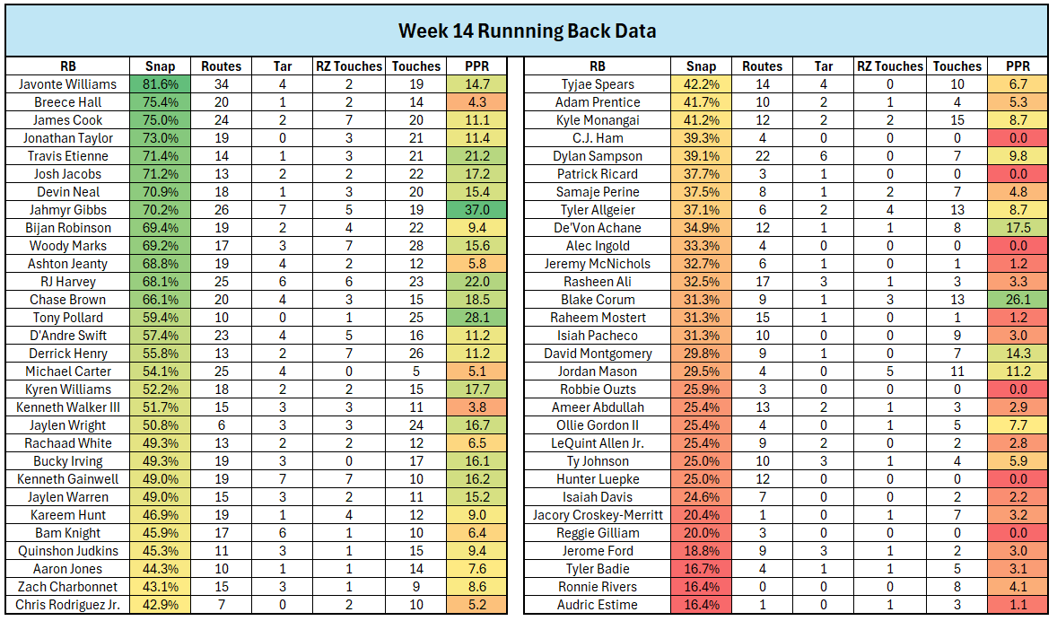WEEK 14 RB Opportunities