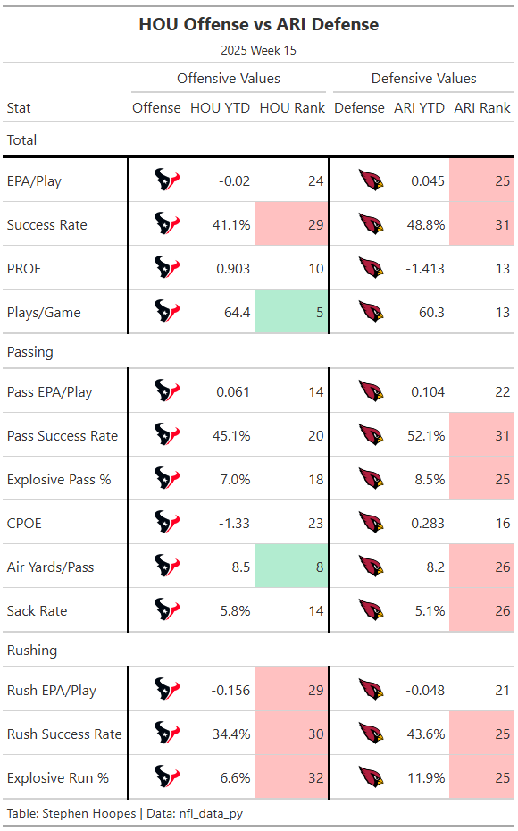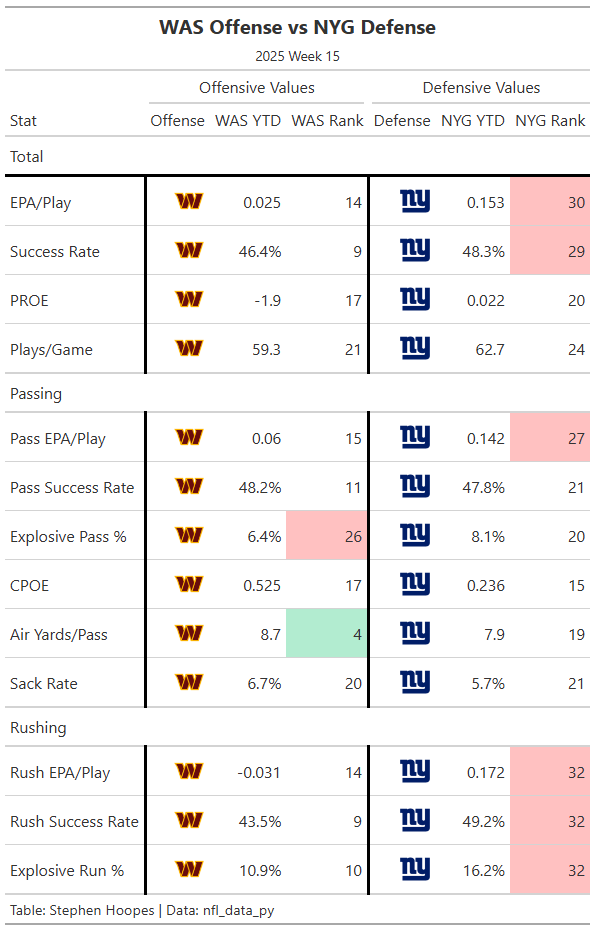 • Like the Falcons, they leaned heavily into the run with a -12.9% pass rate over expectation (PROE).