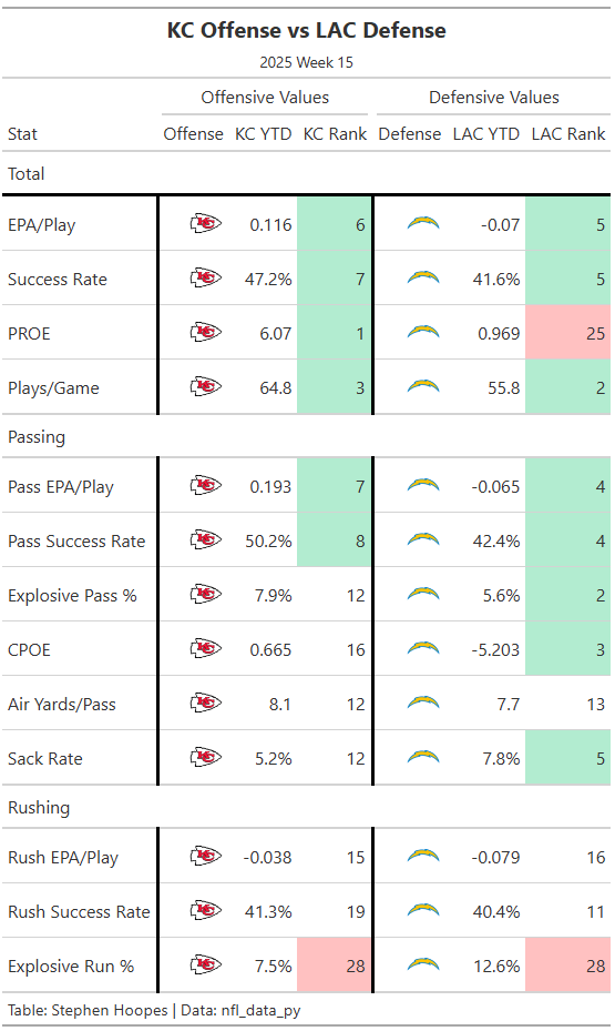 • The Rams are 2nd in defensive pass efficiency, 3rd in defensive rush efficiency, and top-11 in most metrics I track.