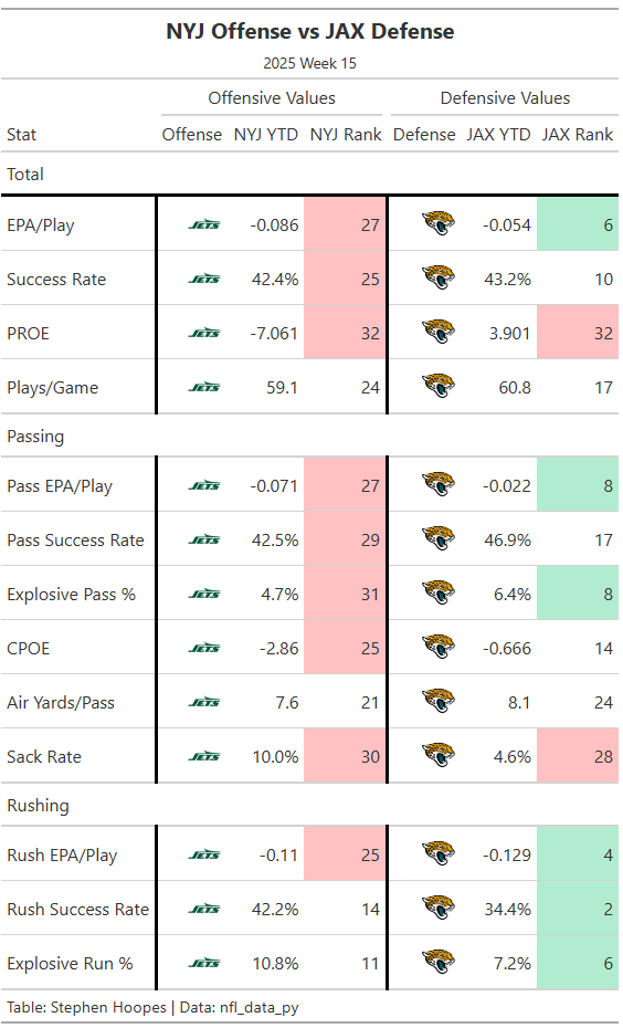 Jets at Jaguars (O/U 41.5, JAX -12.5)