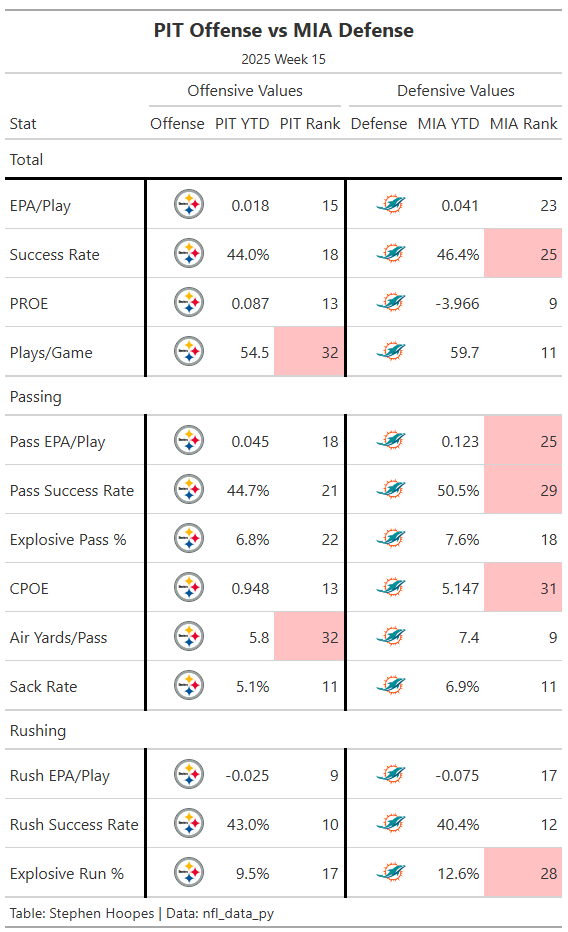 • The biggest question I have this week is whether any of this carries over into Week 15, or do the Steelers go back to being a slow, run-heavy, juiceless offense?