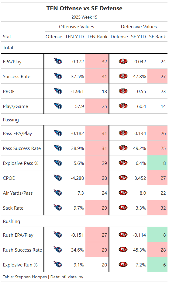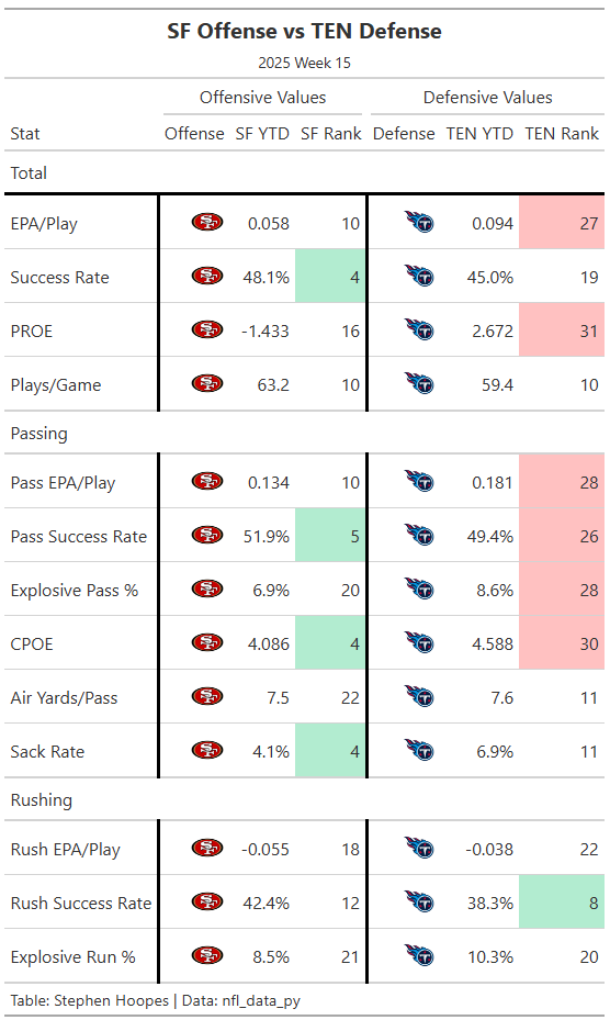 • Shedeur Sanders had a good game with 0.19 EPA per play despite a -4.7% CPOE.