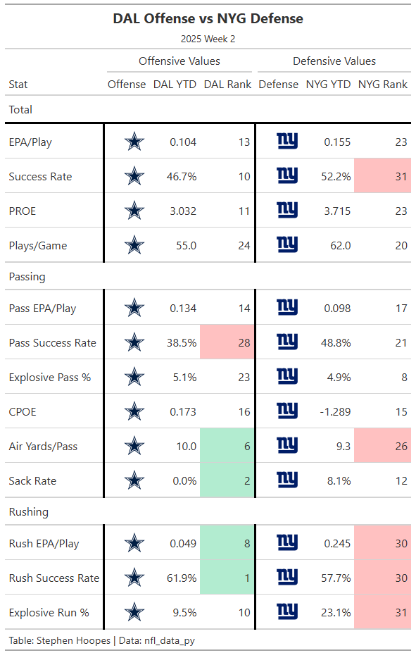 • I’ll be honest, I did not have the Cowboys leading the lead in rushing success rate against the Eagles’ defense on my Week 1 bingo card.