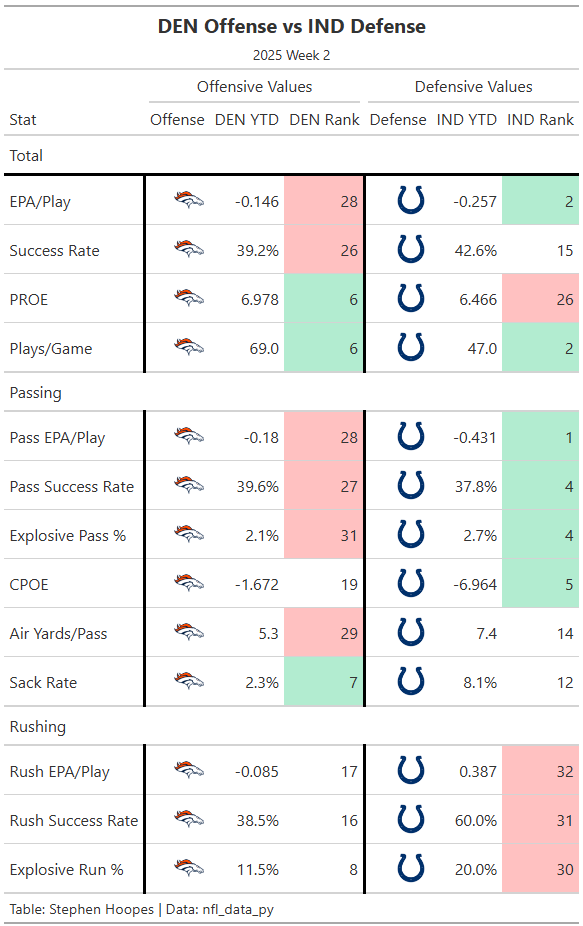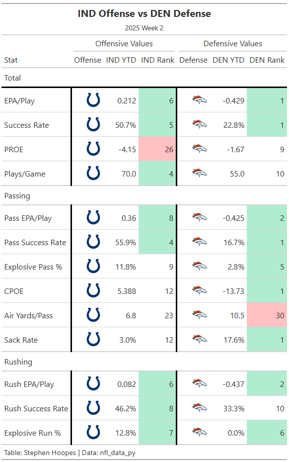 • Everything worked for the Colts’ offense in Week 1, but that was against a terrible Dolphins’ pass defense.