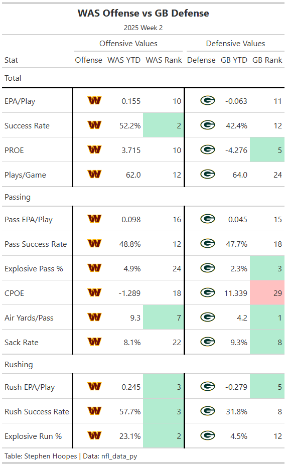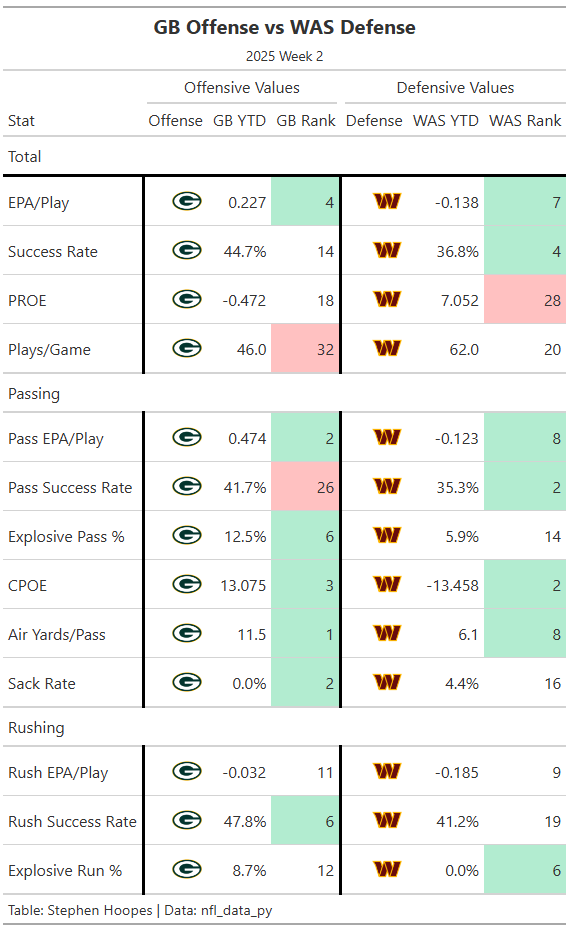 • The Packers were near the bottom in the league in PROE last season, but started this season off +9% in PROE when the game was still in question.