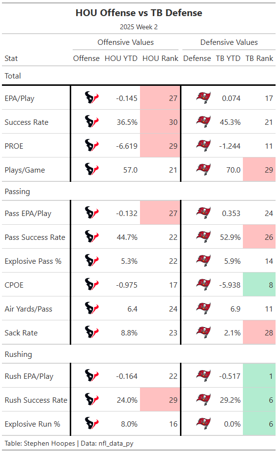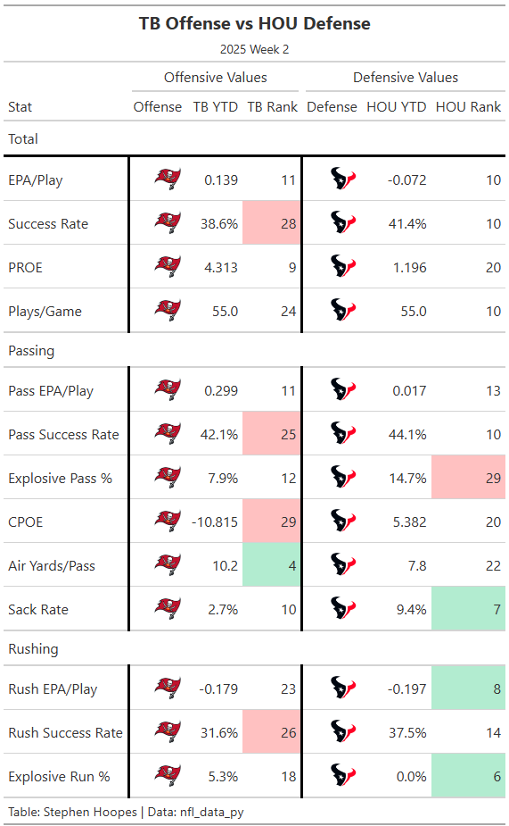• The Texans have a very strong defense, but you can start Mike Evans, Egbuka, and Irving with confidence.
