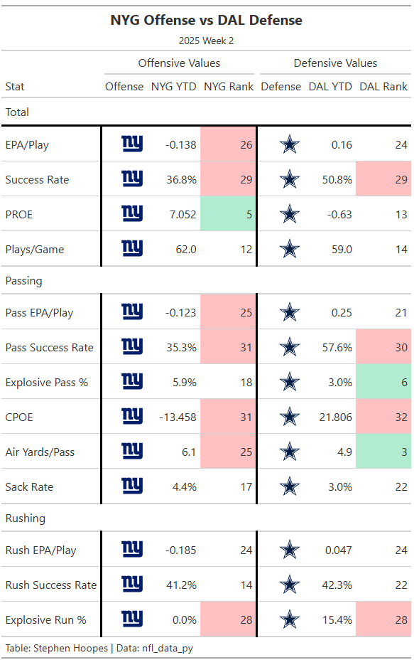 Giants at Cowboys (O/U 44.5, DAL -5.5)