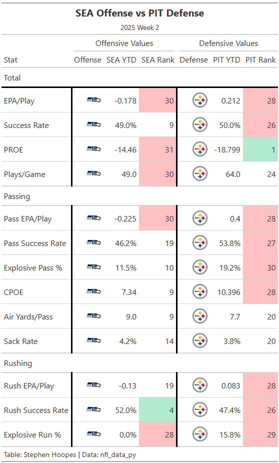 • Well, at least in Week 1, it exceeded all expectations, with their 14.4% PROE good for first in the league.