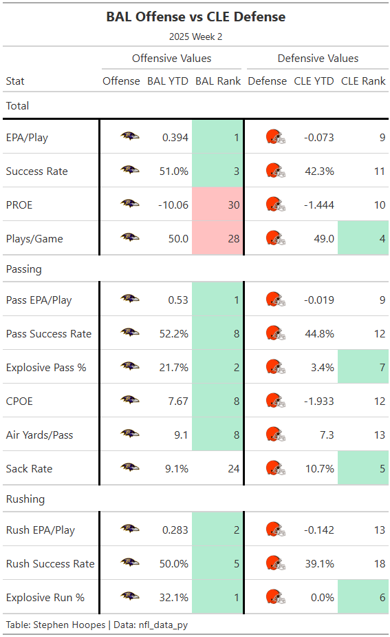 • But it’s tough to knock the decision-making too much when the Ravens had an insane 32.1% explosive run rate.