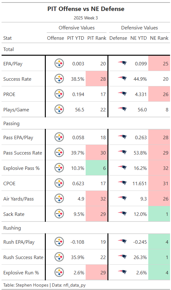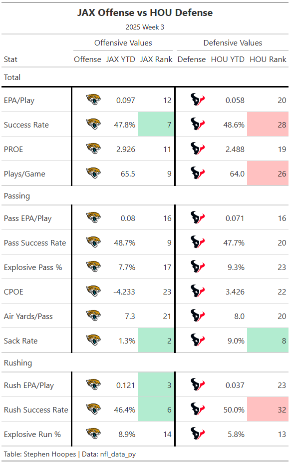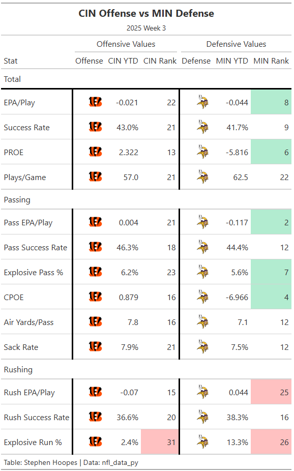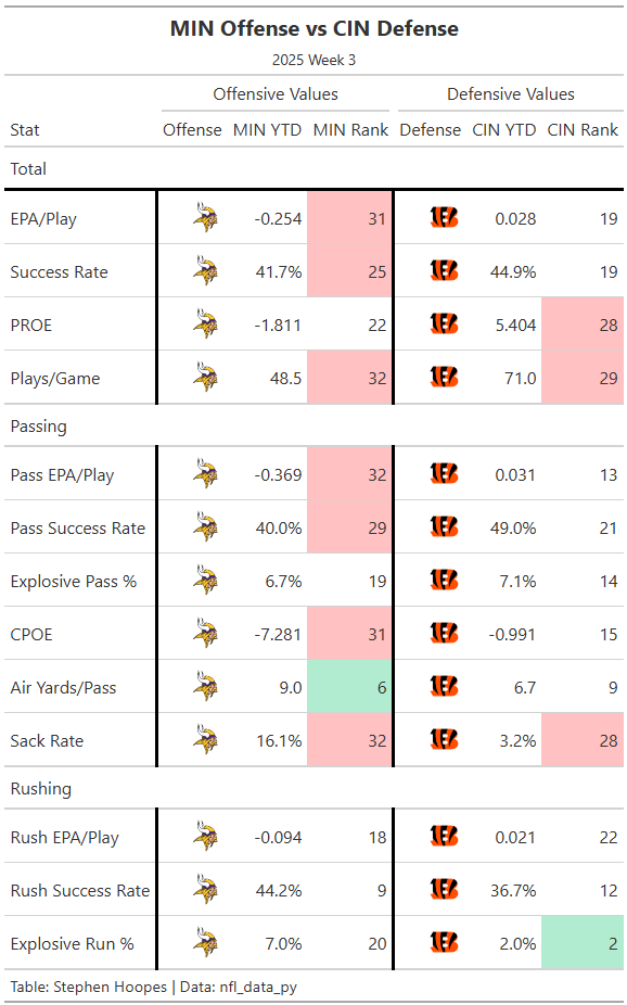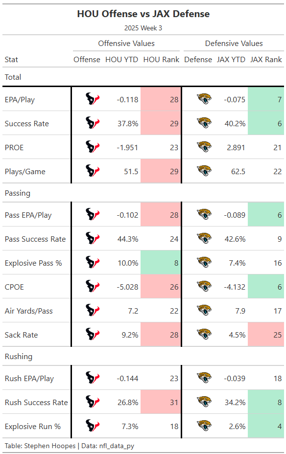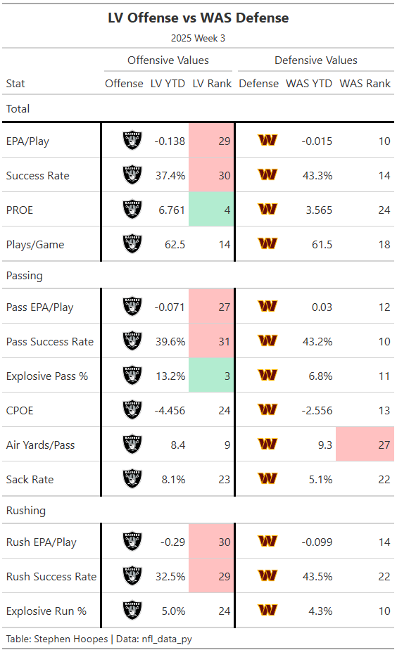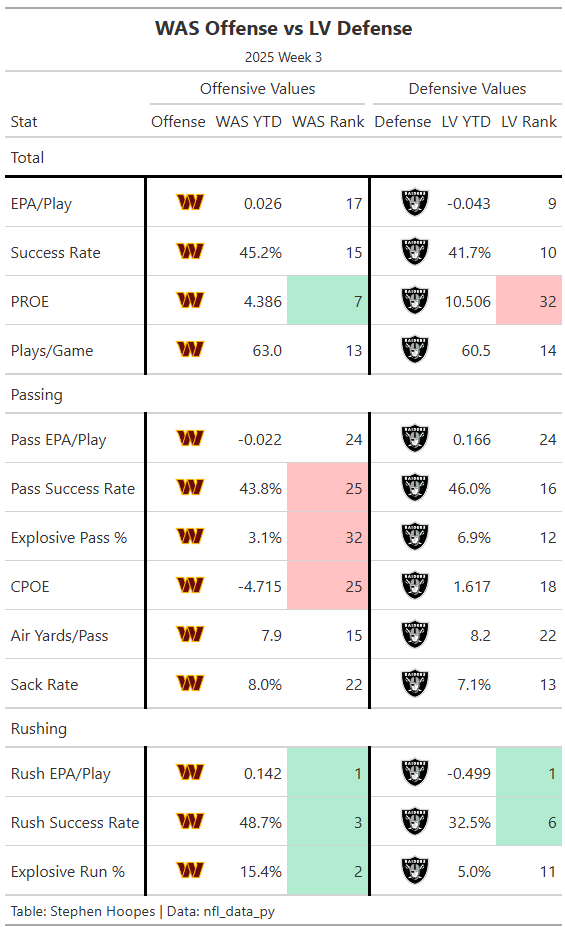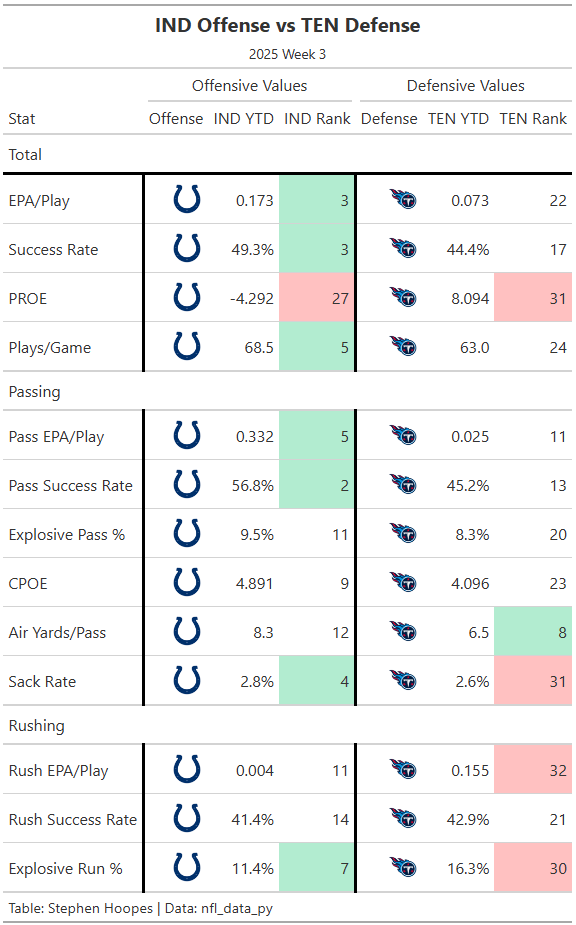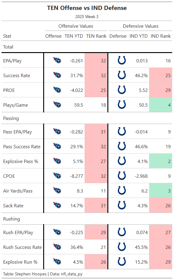 • Their rushing attack was terrible again, but a big portion of the EPA loss was from a fumble on an aborted snap.