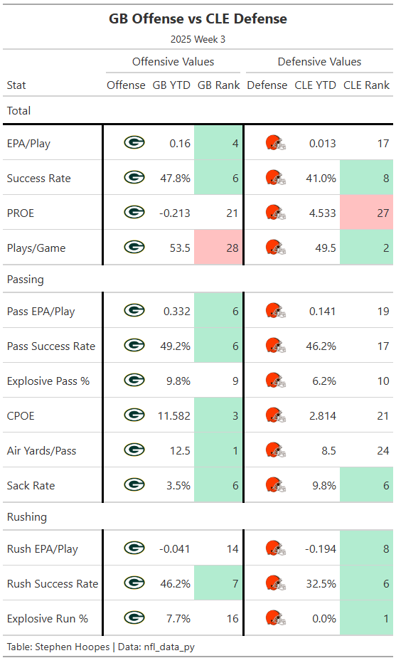 • But I wouldn’t expect that to continue because it was likely just a response to the Browns’ elite run defense.