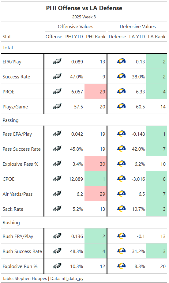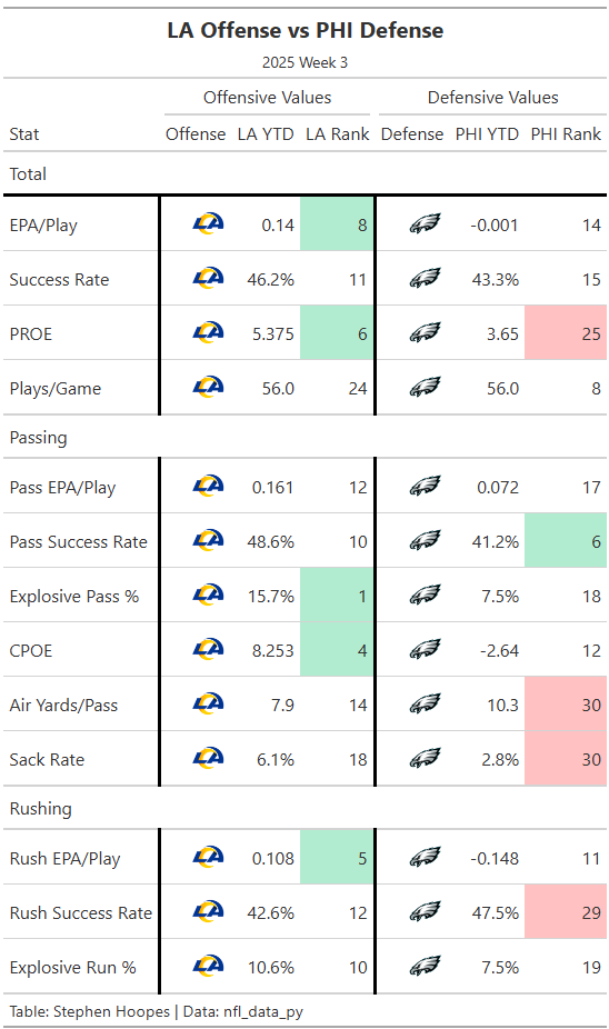 • The Rams had nearly 100th-percentile rushing efficiency last week.