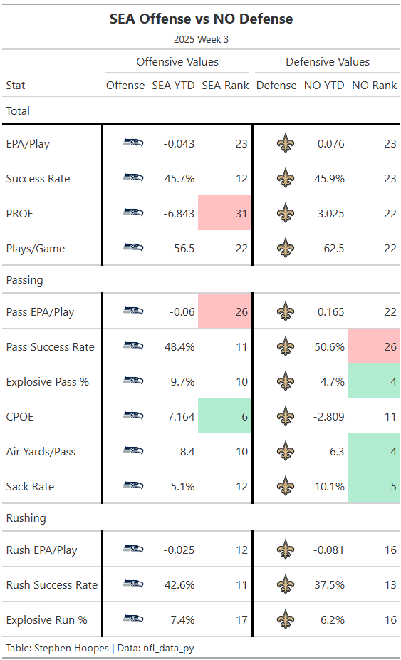 • The Seahawks have a higher EPA per play running the ball than they do passing, which is…woof.
