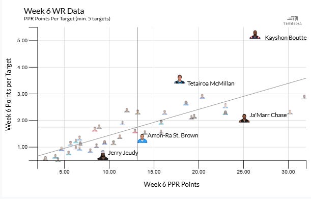 WEEK 6 WR POINTS PER TARGET (MIN 5 TGTS)