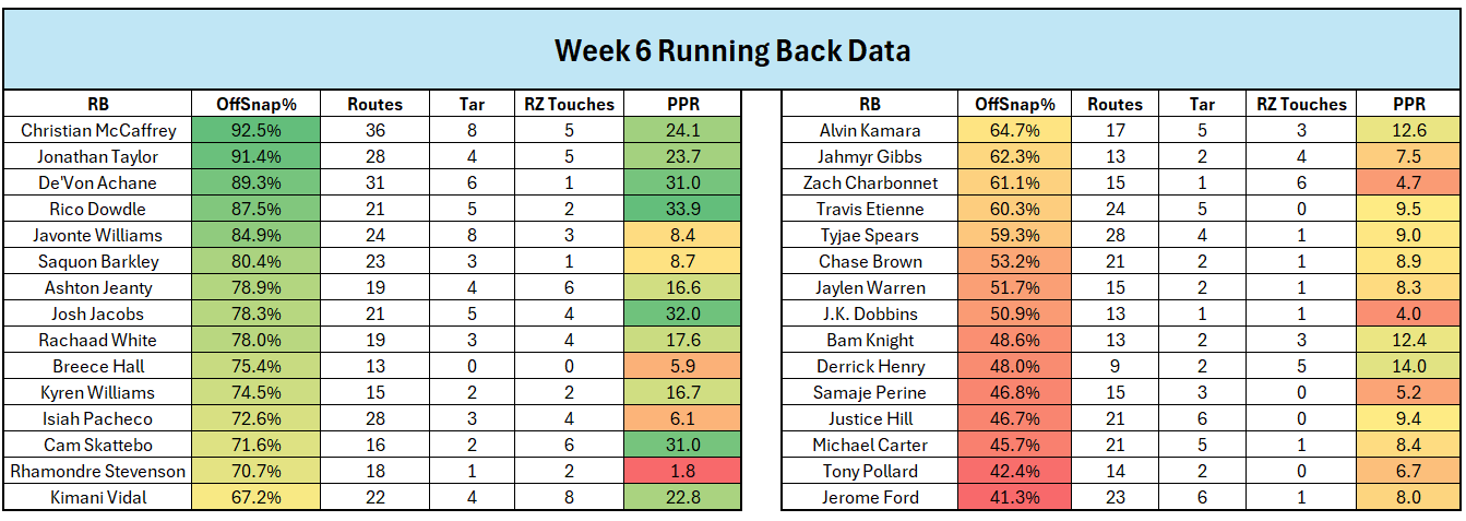 WEEK 6 GAME-BY-GAME FANTASY NOTES