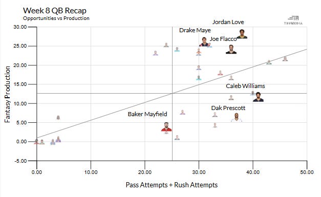 Week 8 QB Opportunities vs Production