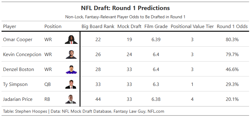 More NFL Draft Resources: 2026 NFL Mock Draft: Connor Allen's 3.0 | 2026 NFL Mock Draft: Scott Smith's 3.0 | 10 Dynasty Players to Buy Before the NFL Draft | 10 Dynasty Players to Sell Before the NFL Draft |