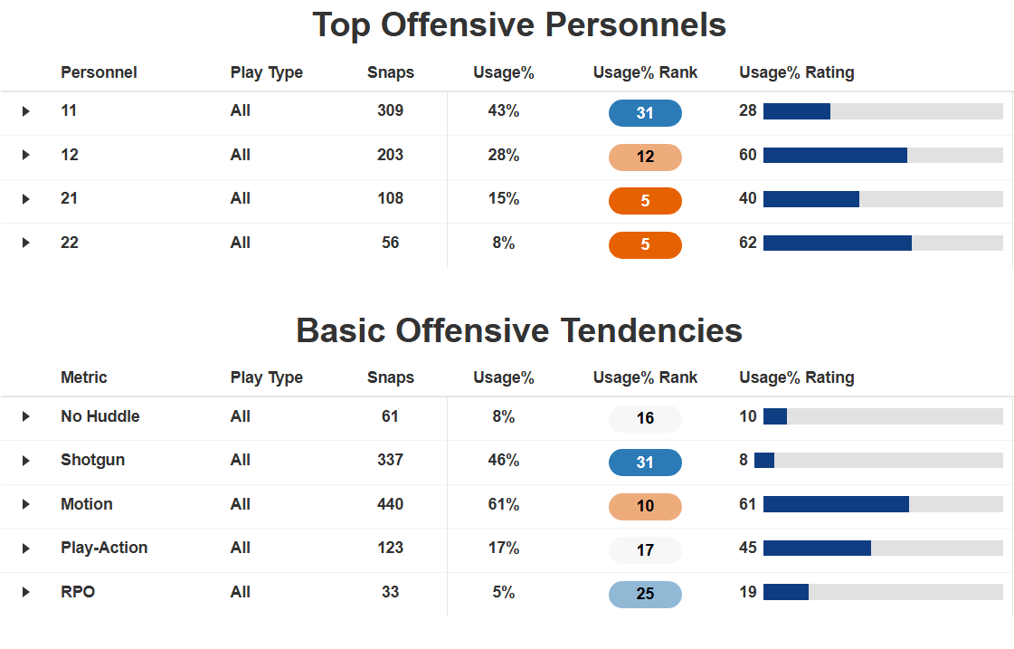 Though Walker’s down-by-down usage left something to be desired, his new career-high 8.1% explosive run rate (carries that go for 15+ yards) still propped him over 1,000 yards rushing, while that percentage of explosives landed him behind only De’Von Achane on the season. Walker’s efficiency has remained fantastic despite the fluctuating workload, ranking among the top running backs in per-play grading over the last three seasons. The Seahawks’ heavy reliance on under-center, multi-TE sets undoubtedly helped things out, while that more 50-50 mix between Walker and Charbonnet kept defenses from honing in on either the run or the pass.