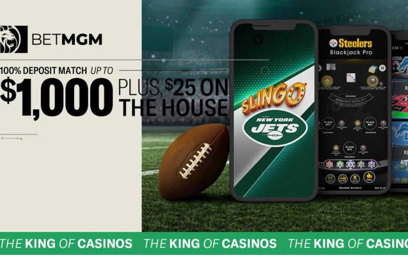 Get the BetMGM welcome offer of a 100% Deposit Match up to $1000 + $25 on the House
