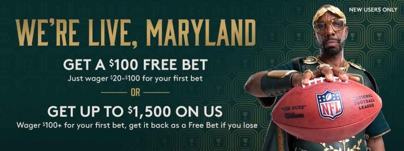 Betting on sports in Maryland is now legal, and Caesars sportsbook has some excellent incentives to signing up. You can get a FREE $100 bet or, if you'd prefer to start off with a bang, place your first bet Risk-Free up to $1500. Let's review the two choices and learn how to take advantage of the promo code that works best for you.