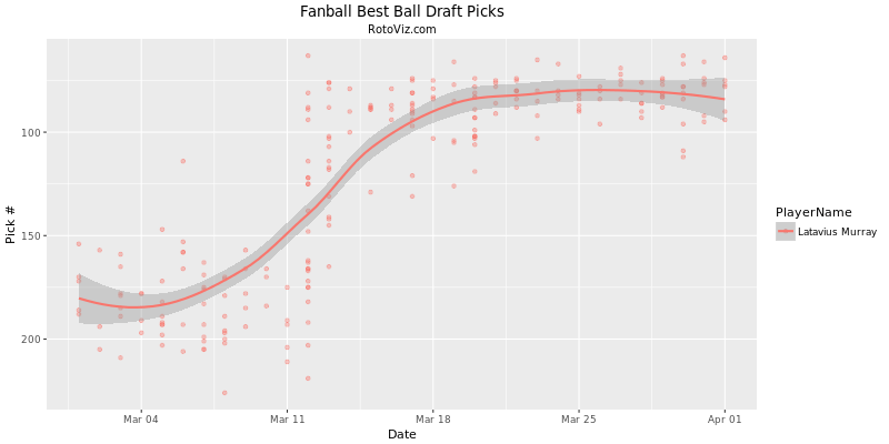 Murray’s ADP over the month of March has seen an uptick since he signed with the Saints (March 12th).