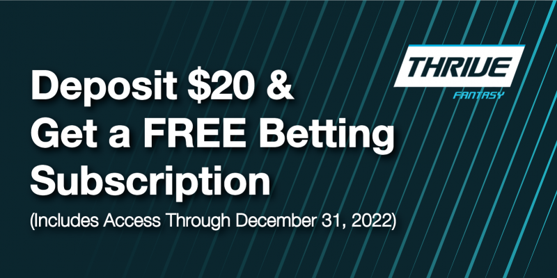 We have partnered with ThriveFantasy to bring you an easy way to claim a FREE, no-strings-attached Betting subscription to 4for4, a 4for4 T-shirt, plus a 100% deposit match up to $250! The subscription runs through December 31, 2022 and the T-shirt promo ended on October 24, 2022.