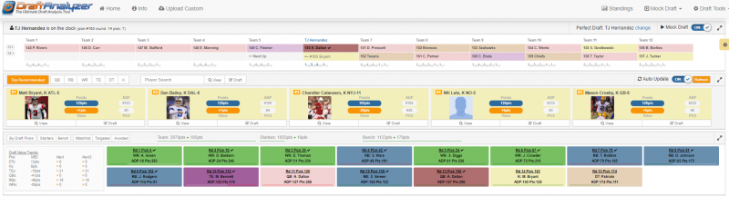 - Avoid List: Empty. Every player becomes a value at some point in the draft and I want to be sure that I am notified when those values become available.